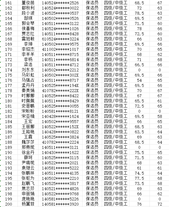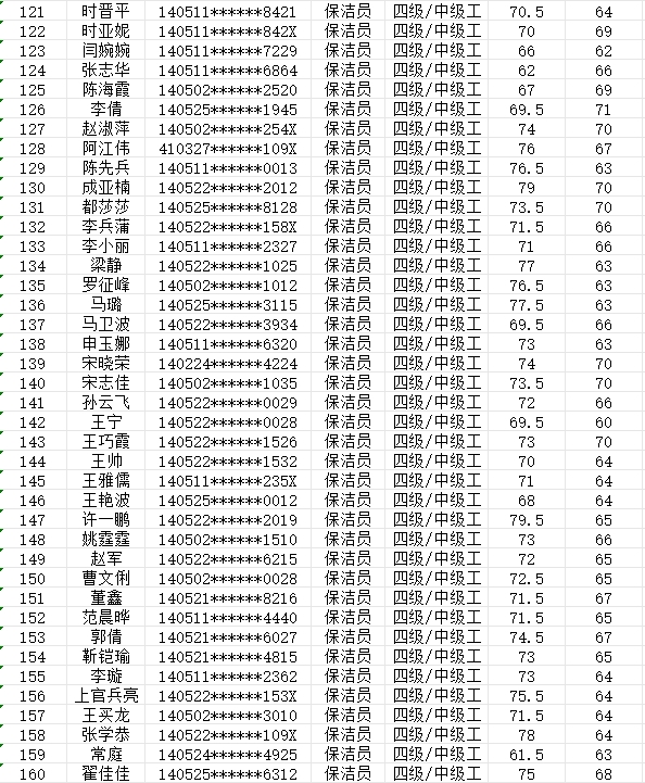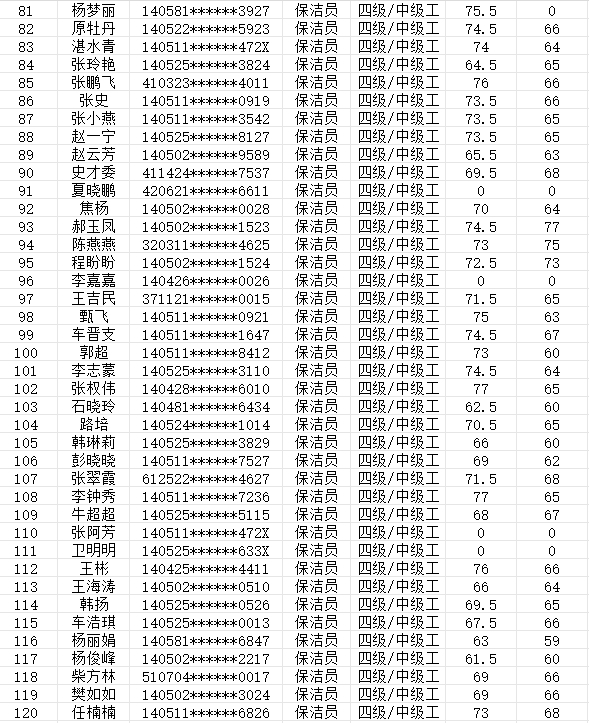 晉城市潔霸清潔服務股份有限公司職業(yè)技能等級認定中心現(xiàn)將2024年2月25日認定人員成績公示如下: